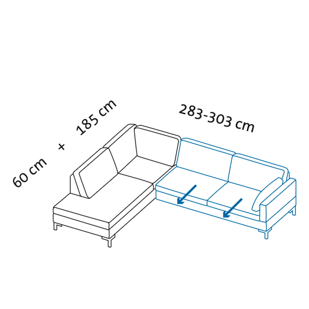 - Garnitur 67620 + 67655 (gespiegelt, Y1 + D2) in cm: B 282-303 / H 84 oder 86 / T 245