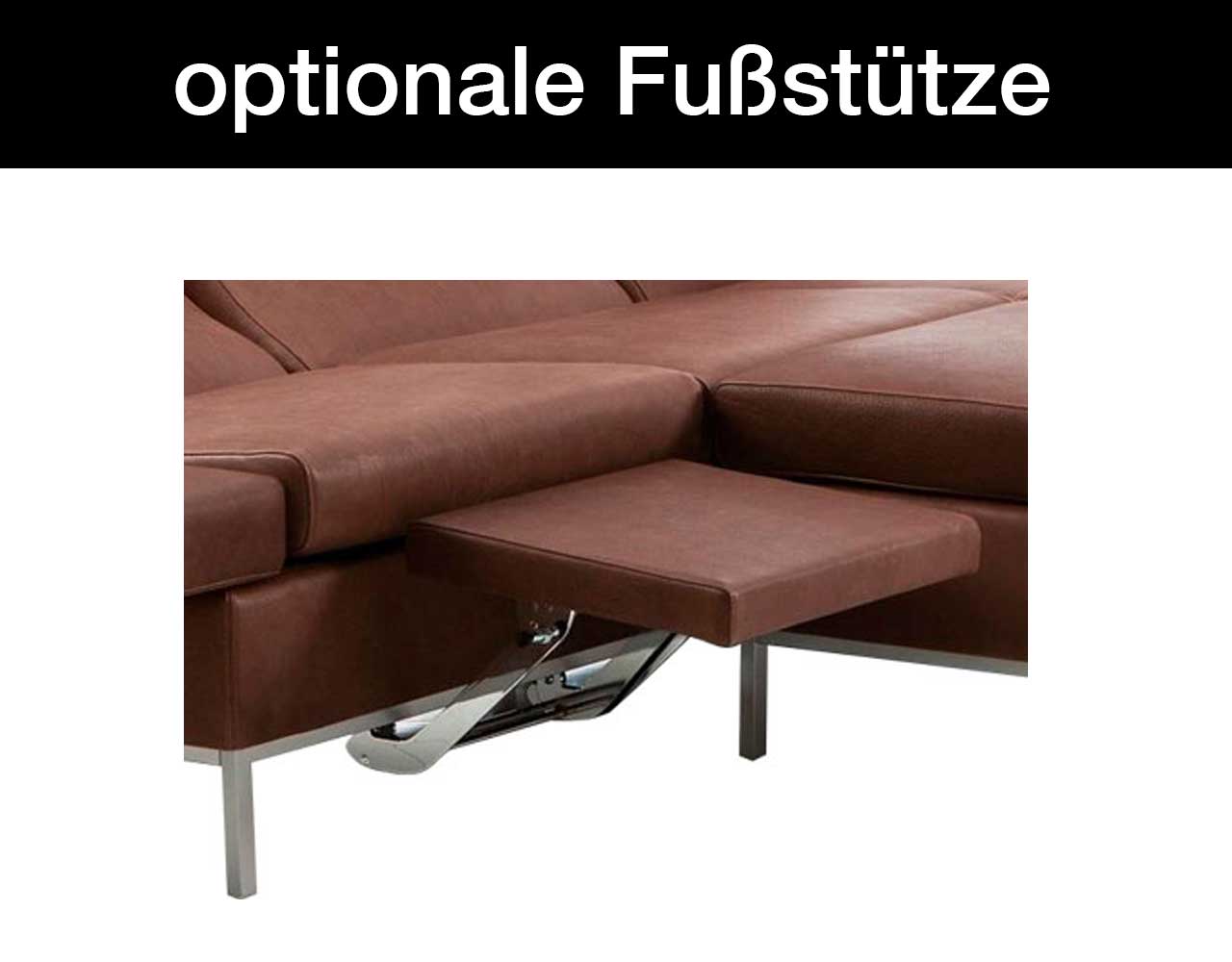 - tomo kann gegen Aufpreis an jedem Sitzplatz (nicht beim Longchair) mit einer integrierten, ausziehbaren und neigungsverstellbaren Fußstütze ausgestattet werden.