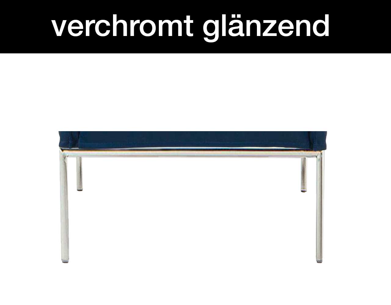 - Fußform Standard: Metalluntergestell, verchromt glänzend inklusive höhenverstellbarer Füße (stufenlos bis 2 cm), Sitzhöhe 43 cm